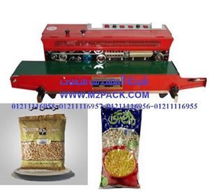 تستطيع ماكينه لحام وتصنيع أكياس متعددة الطبقات مع طباعة تاريخ إنتاج بسير ناقل موديل301 ماركة المهندس مـــنـسى تصنيع